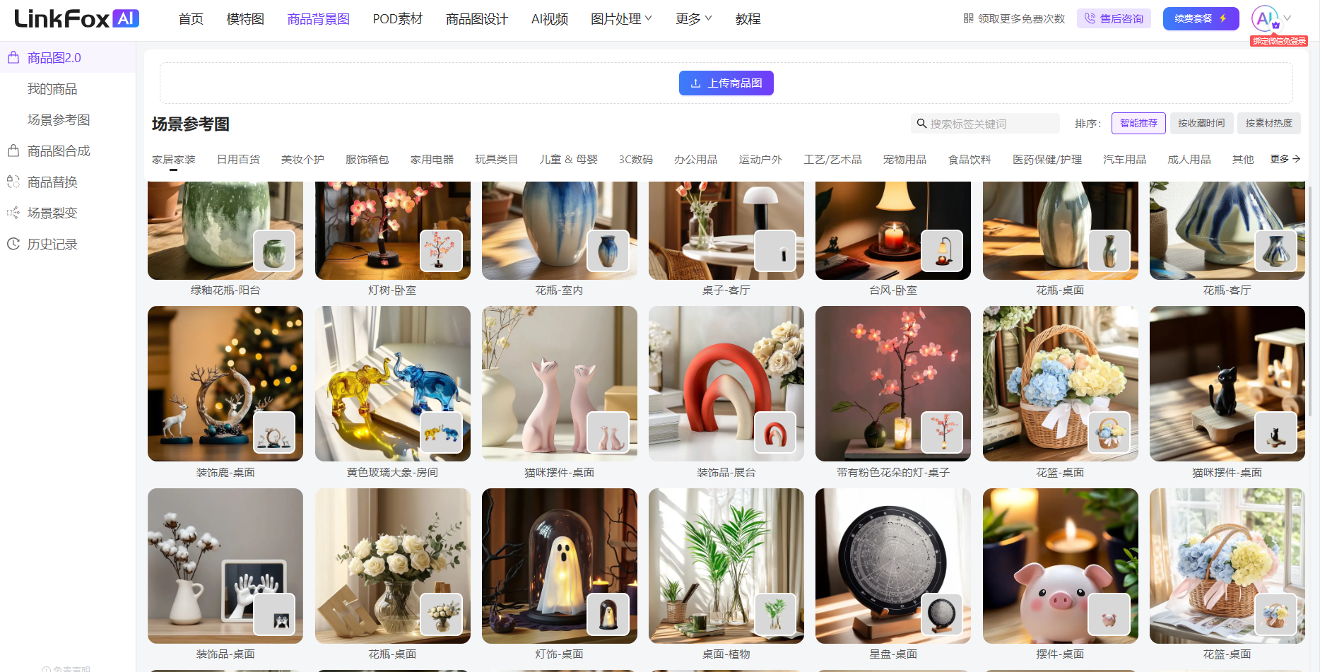 - 智能场景推荐:AI 自动识别商品品类,推荐同类优质场景,避免 “盲目生成”,且场景无版权风险;