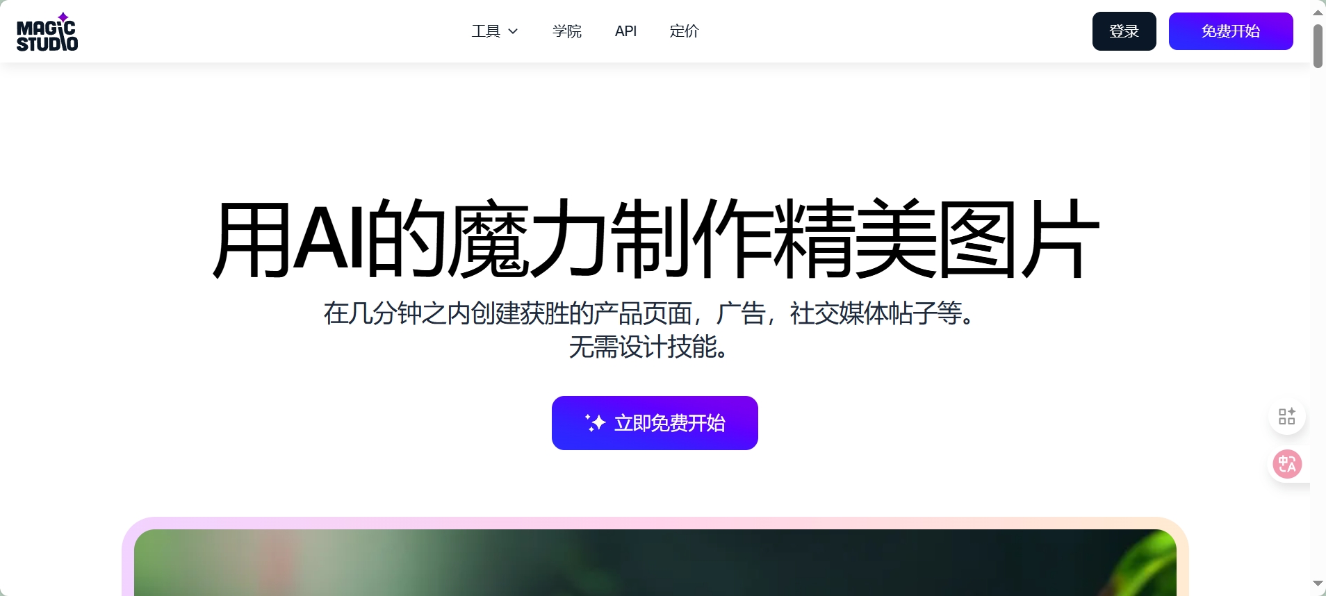 Magic Studio 凭借 AI 技术带来的简便操作和强大功能,成为一款深受欢迎的图像编辑平台,无论是普通用户还是企业机构,都能借助它高效制作出符合需求的精美图片,在图像创作领域具有广泛的应用价值。