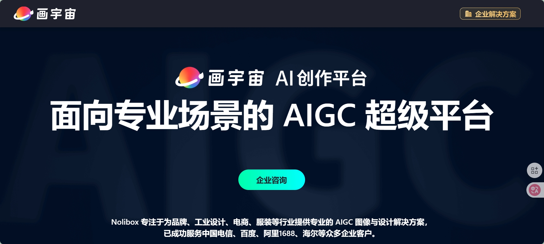 画宇宙(Nolibox)是一款面向企业级用户的专业 AIGC(人工智能生成内容)创作平台,核心定位为 “行业级创意设计加速器”。其通过整合 AI 生成技术与垂直行业需求,为品牌营销、工业设计、电商运营、服装设计等领域提供从创意构思到内容落地的全链路解决方案,帮助企业降低设计成本、提升创作效率,已服务中国电信、百度、阿里 1688、海尔、中国农业银行等众多知名企业及机构。