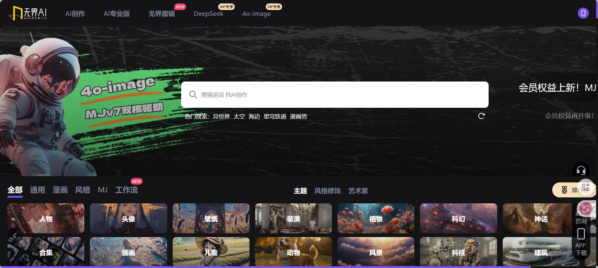 无界 AI 定位为 “AI 驱动的创意视觉创作工具”,主要服务于插画师、设计师、动漫爱好者及有个性化图像需求的用户。其核心价值在于通过 AI 技术将文字描述转化为可视化图像,降低创意表达的技术门槛,支持用户快速生成符合想象的视觉内容,展现了丰富的创作可能性。