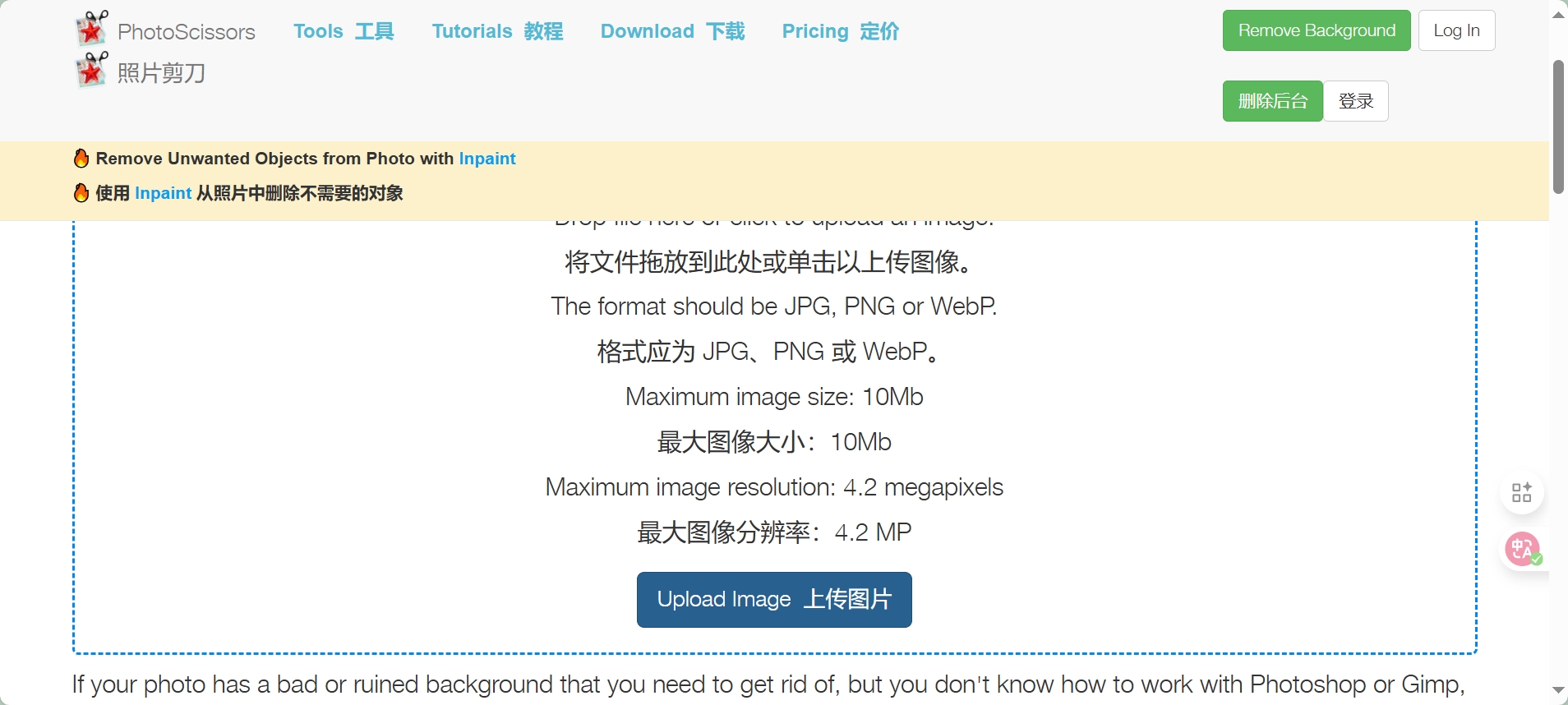 - 上传图片(支持 JPG、PNG、WebP 格式,最大 10Mb、4.2Mpx)后,AI 自动识别前景与背景并分离,无需手动勾勒,几秒内完成处理。