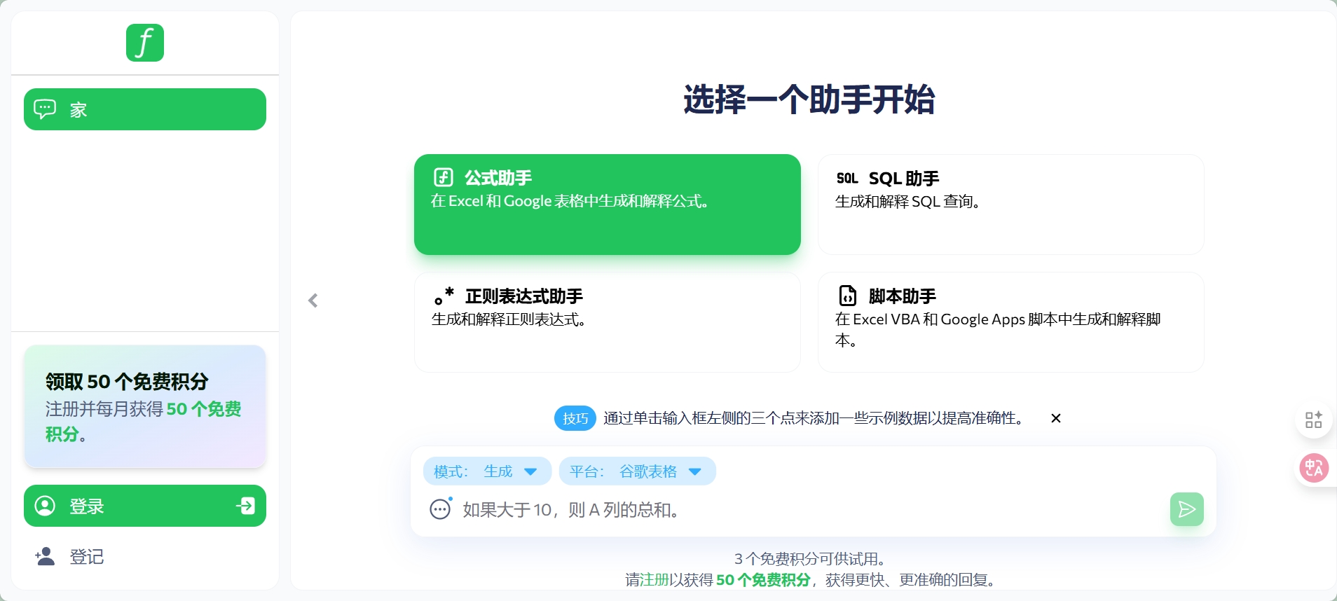 Formularizer以生成与解释公式、查询、脚本为核心,助力用户高效处理 Excel、SQL 等办公场景需求。