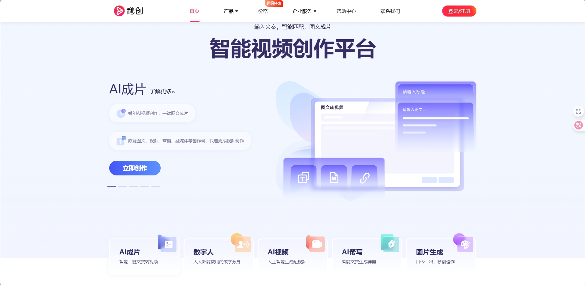 秒创(一帧秒创)是一款聚焦 “全流程 AI 内容创作” 的智能平台,核心定位是 “让视频制作零门槛、高效率”。它支持从文案生成到视频输出的全链路自动化,用户只需输入文字(如标题、正文、灵感),即可一键生成视频、数字人播报、图文内容甚至绘画作品,无需专业技能,1 分钟内完成从创意到成品的转化。