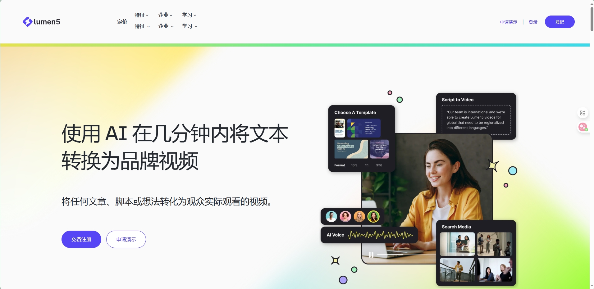 Lumen5 是一款聚焦 “文本驱动型短视频自动化创作” 的 AI 平台,核心定位是 “让长文内容快速变身社交媒体吸睛视频”。它通过 AI 技术将博客、文章、文案等文本内容自动拆解为短视频脚本,匹配版权素材(图片、视频片段)、添加字幕与背景音乐,无需剪辑经验,5 分钟即可生成适合抖音、Facebook、LinkedIn 等平台的短视频,帮助创作者将文字流量转化为视频传播力。