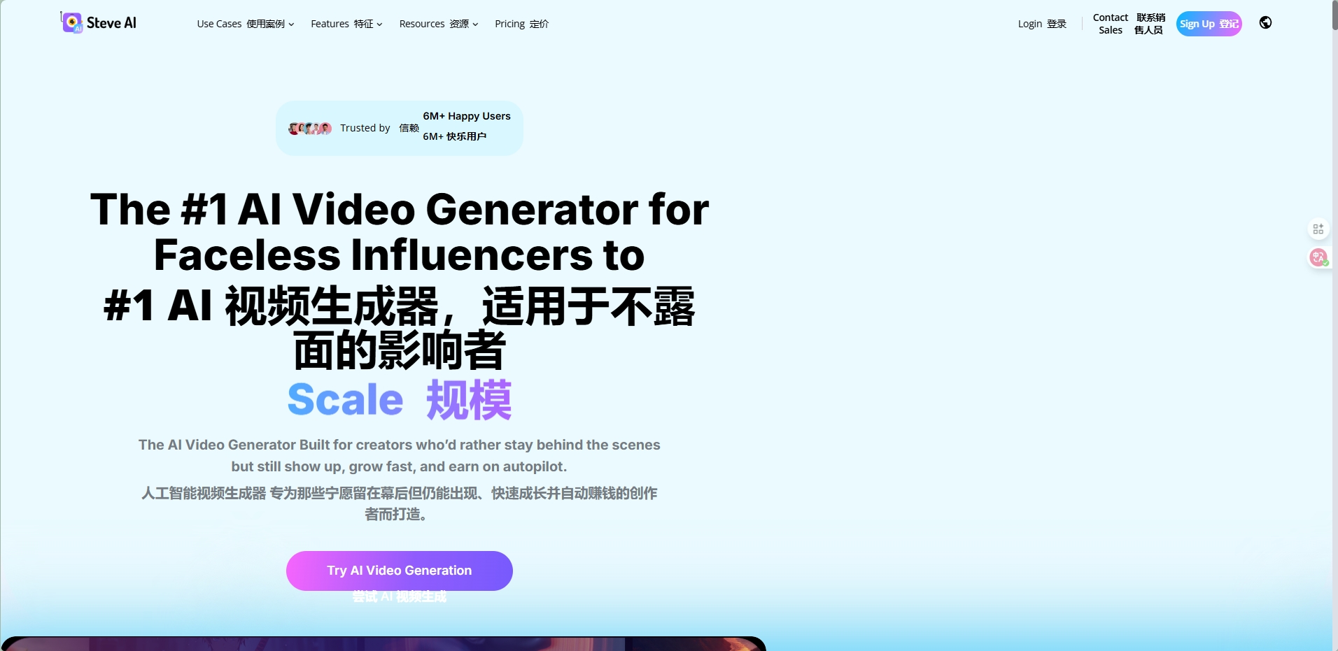 Steve AI 是一款聚焦 “无真人出镜内容规模化创作” 的 AI 视频平台,核心定位是 “让镜头恐惧者也能轻松成为爆款创作者”。它以文本驱动为核心,整合了 AI 脚本生成、动画 / 实景视频制作、多语言配音、场景定制等功能,用户只需输入创意 prompt(如 “制作一条猫咪科普短视频”),即可快速生成完整视频,无需拍摄、剪辑经验,适配抖音、YouTube、Reels 等多平台,尤其适合想打造虚拟人设、避免露脸的创作者。