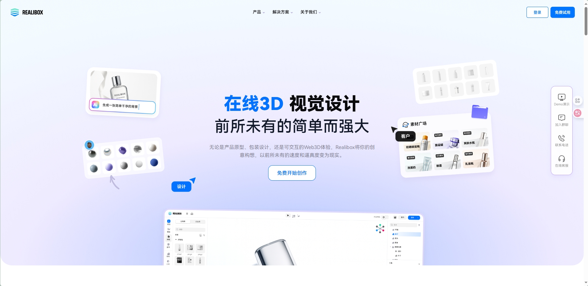 Realibox 是一款能让你在浏览器里搞定 3D 设计的在线工具 —— 不用下载安装复杂软件,打开网页就能画产品、做包装、搭场景。无论是护肤品的瓶子造型、电子产品的外壳设计,还是能在网页上互动旋转的 3D 模型,它都能帮你从创意变成逼真的 3D 成果。