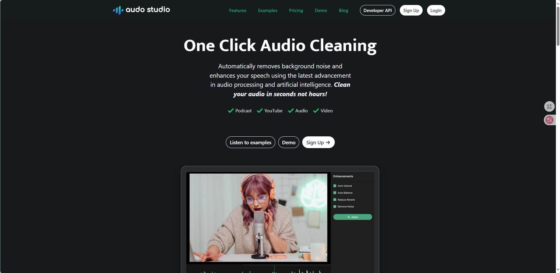 帮播客创作者提升内容质感:在家录制播客时,消除空调声与窗外车流声,提纯人声并优化立体感,某博主反馈 “用普通麦克风录制,经 Audo 处理后音质堪比专业录音棚,粉丝问‘换设备了吗’”;