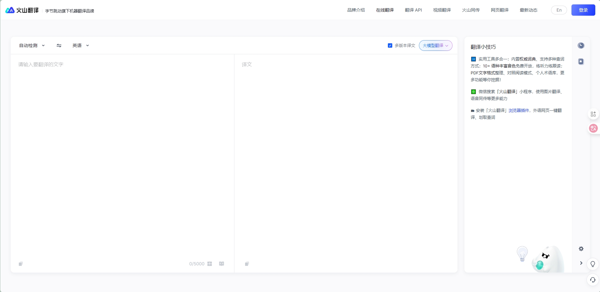 - 多端访问与登录:支持网页端直接使用,无需下载软件;提供登录功能(可关联字节系生态账号),登录后可同步翻译历史、偏好设置,方便跨设备使用;